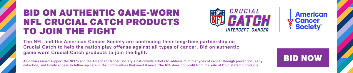 The NFL does not retain any profits from the sale/auction of NFL Crucial Catch products. All dollars raised from the auction to support the NFL’s and the American Cancer Society’s nationwide cancer prevention and early detection efforts, including the implementation of ACS’ CHANGE Grants